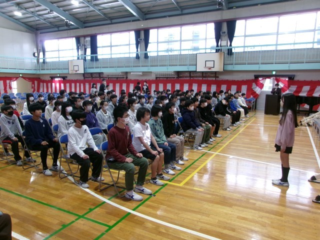 いよいよ卒業式の練習が始まりました。今日は、証書授与の流れの練習です。当日、自信をもって臨めるようにがんばってください!