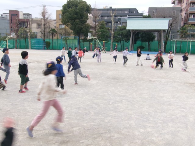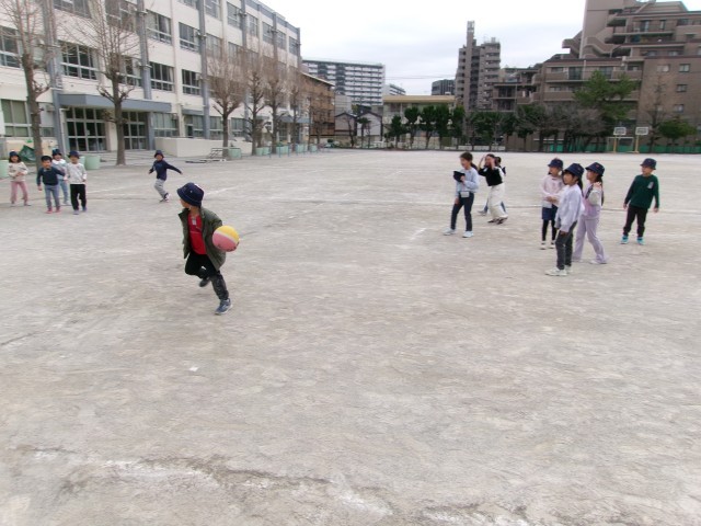 仲よく元気いっぱいにドッジボールを楽しんでいました。