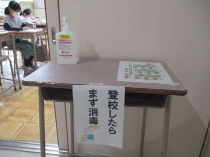 学校では、検温、消毒、マスクの着用など安全管理を徹底して授業を行っています。