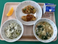 冷凍食品などではなくて、給食室で手作りしているから、このようにヘルシー食材を入れることができるのです。
