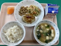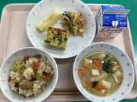 ひよこ豆のドライカレー、牛乳、ポテトのパリパリサラダ、オセロ寒天