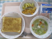 明日は、6年生が区の体育大会に参加します。勝負に勝つ!という意味も込めたメニューでした。