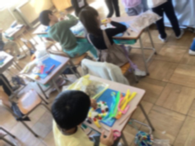 生活科の学習でお世話していた朝顔のつるを使ってリース作りをしました。