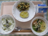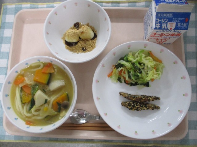 今日の給食は「かぼちゃ入りけんちんうどん」でした。