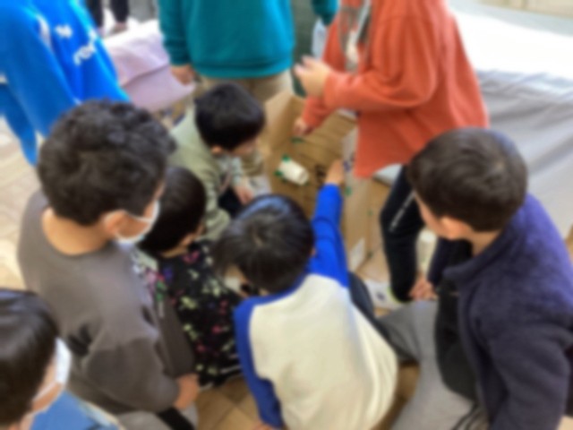 それぞれが作ったおもちゃを他のクラスの人に披露し、一緒に楽しく活動していました。