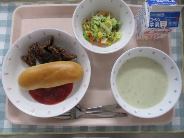 また主食はパンが中心だったので、今日の給食はコッペパンに手づくりのいちごジャムを自分でつけて食べました。