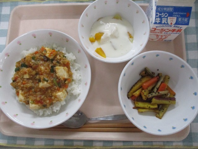 うきたの給食3.9 公開日 2026/03/10 更新日 2026/03/10 うきたの給食 今日の献立*シーホー豆腐丼*さつまいものきんぴら*フルーツヨーグルト*牛乳シーホー豆腐は、トマトを使って作る豆腐料理のことで、トマトとお酢を使ったマーボー豆腐のような料理です。今日はごはんにかけて食べました。少し酸味がありましたが、子供達には好評でした。 いいね(1)