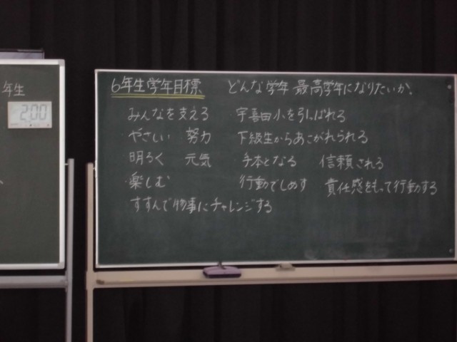 6年生は早くも学年集会で、学年のめあてを話し合っていました。さすがは、最高学年。1年間学校のリーダーとして