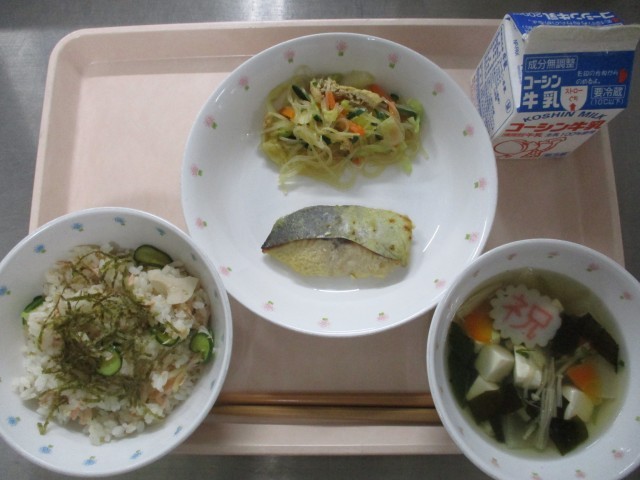 うきたの給食4.7 公開日 2026/04/09 更新日 2026/04/09 うきたの給食 今日の献立*祝い寿司*さわらの西京焼き*和風春雨サラダ*お祝いすまし汁*牛乳令和8年度の給食が始まりました!今日は2~6年生の進級をお祝いして、すまし汁に「祝」の文字が入ったなるとを入れました。今年度も、安全でおいしい給食を提供しますので、よろしくお願いいたします。 いいね(0)