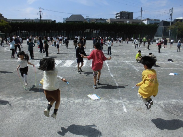 縄跳びウィーク 公開日 2026/04/14 更新日 2026/04/14 R8 校長室だより 全校児童が外に出て、みんなで縄跳びに挑戦です。「校長先生見てください。」と次々に自慢の技を見せに来てくれます。楽しみながら体力づくり。素敵です。 いいね(0)