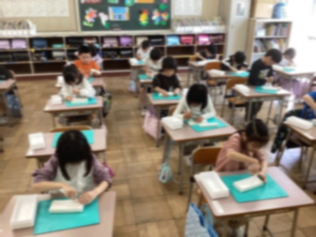 硬い粘土を柔らかくするために、体重をかけて一生懸命こねていました。
