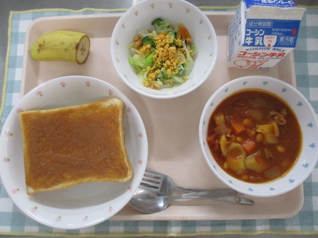 うきたの給食4.16 公開日 2026/04/17 更新日 2026/04/17 うきたの給食 今日の献立*はちみつきなこトースト*ミモザサラダ*ポークビーンズ*バナナ*牛乳今日のサラダは「ミモザサラダ」でした。卵を細かい炒り卵にして、黄色いミモザというお花に見立てたサラダです。見た目もきれいなので、ぜひご家庭でも試してみてください。 いいね(0)