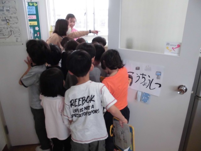 20分休みに 2年生が1年生を連れて、校長室にやってきました。