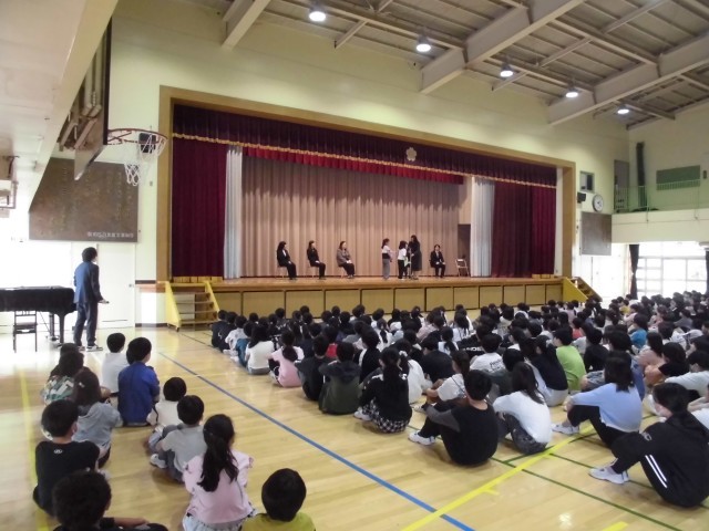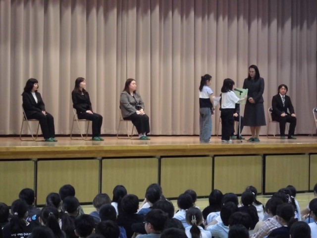 今日は離任式。お世話になった先生方が学校に来てくださいました。