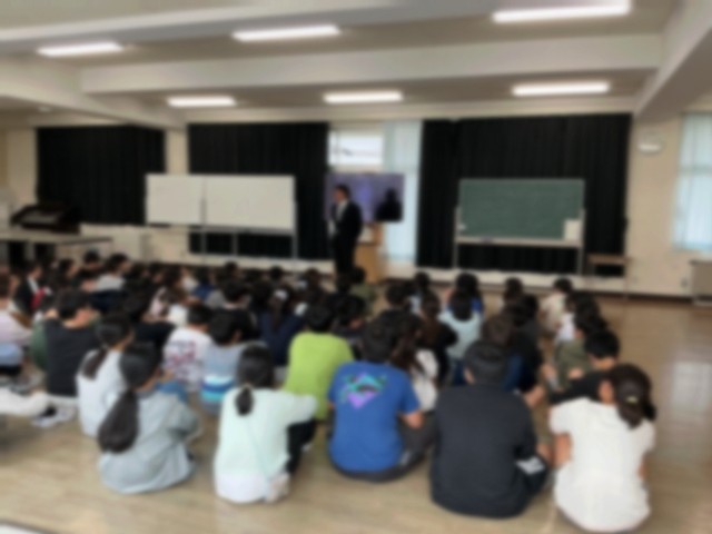 離任式後には多目的室に集まり、お世話になった先生方からメッセージをいただきました。