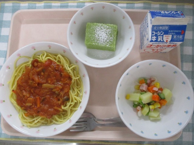 うきたの給食4.27 公開日 2026/04/28 更新日 2026/04/28 うきたの給食 今日の献立*ツナとトマトのスパゲッティ*マセドニアンサラダ*こまつなケーキ*牛乳今日は、江戸川区の特産であるこまつな入りのケーキを作りました。黄緑色がとてもきれいなケーキが仕上がりました。 いいね(0)
