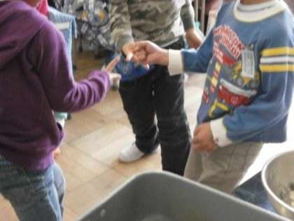 1年生にとって、はじめての給食です。みなさん給食のマナーをしっかり守って食べていました。
