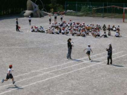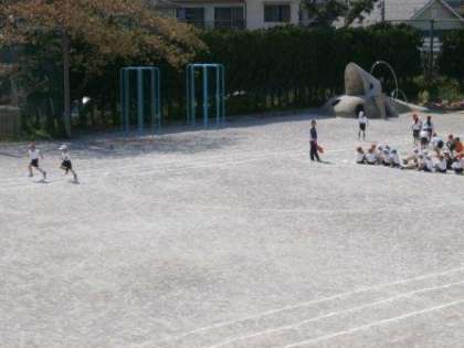 4年生全クラスが校庭に集合しました。80M走のタイムを計ります。大きな声援が校長室まで聞こえて来ます。流石、元気な4年生です。