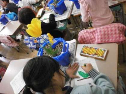 4時間目に2年生の授業を参観しました。どのクラスも姿勢がとても良かったです。映像に集中、先生の話に集中、チューリップの花に集中と、『集中力』の高さを確認することができました。流石、2年生です。