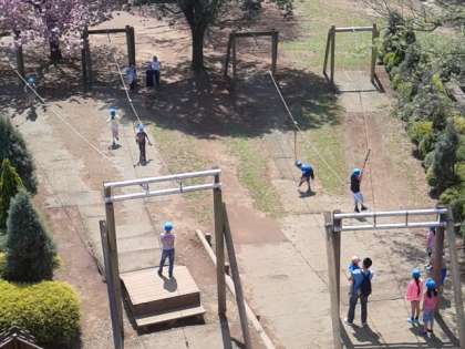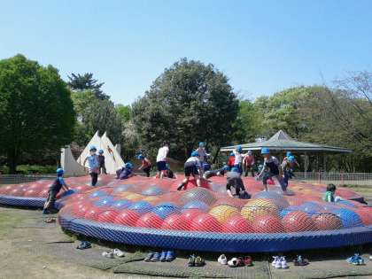 写真撮影が終わると『遊び』の始まりです。大滑り台、ワンパクボールではじけます。