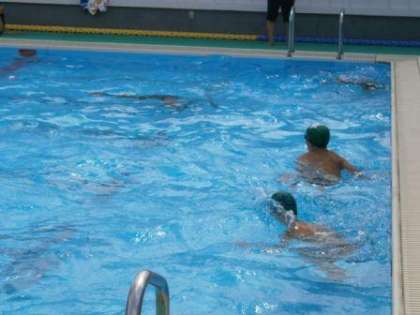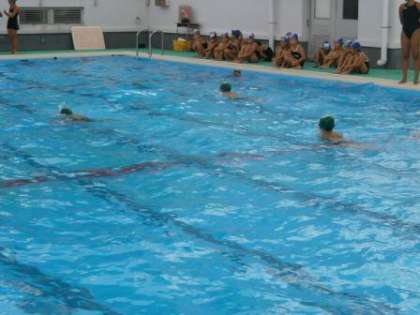 平泳ぎの児童に檄が飛びます。無事にゴールして安心する児童。次回の検定に向けて闘志を燃やす児童。夏休み水泳教室は終わりました。