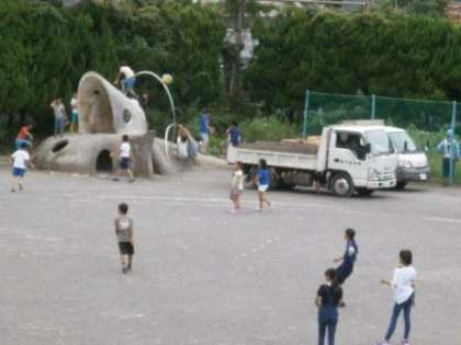 児童の皆さんは、雨にも負けずの精神で、昼休み校庭で遊んでいました。