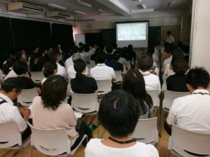 宇喜田小学校の教育について、パワーポイントを使って教務主幹より発表しました。スローガン倒れになることなく、また、現状の成績に甘んじることなく、他校の先生方のためにつくった映像でしたが本校の先生方一人一人が注視していたのが印象に残りました。