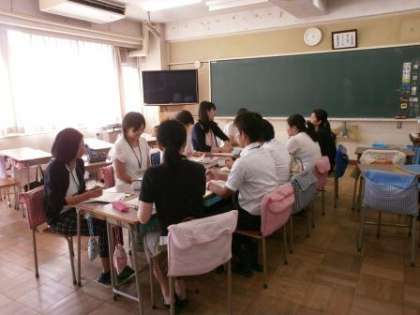 5校時終了後、児童は下校し全体会をランチルームで行いました。