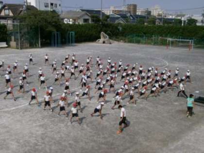 今日から6年生は区体育大会の練習を始めました。初日の今日、2時間の練習でしたが気持の良い汗を流していたようです。