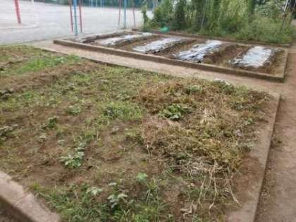 今日の昼休みに撮影した写真を掲載しようと作業をしながら、外を見て見ると、『GO GOクラブ』のみなさんが活動をしていました。いや、今もしています。大きな袋に枯草や古くなった野菜の茎を入れて宇喜田の森へ運んでくれました。月曜日、また一段ときれいになった花壇や畑を見ながら遊ぶ児童の姿が予想できます。