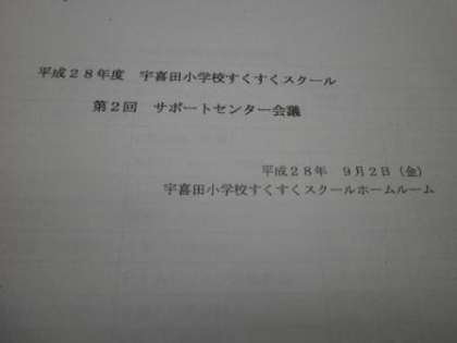 平成28年度 宇喜田小学校すくすくスクール第2回サポートセンター会議を7時から行いました。28年度の中間報告、今後の活動予定について報告がありました。その後、9月24日に実施する『宇喜田小学校すくすくスクール文化祭&交流会の運営について細かな打ち合わせをしました。』今年の文化祭には、葛西二中の吹奏楽部のみなさんが参加してくれます。第2部では『豚汁』が300食用意されるという事でした。こちらも楽しみです。