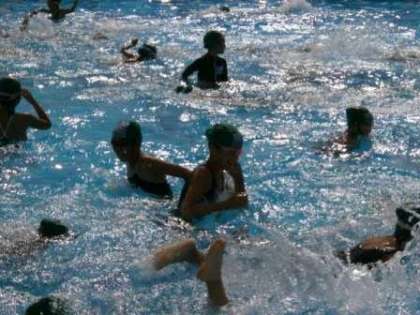 4年生の水泳大会を参観しました。4年生の宝探しは予想以上に激しいものでした。