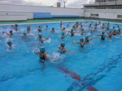 リズム水泳、宝探し、ボール運びリレーをしました。