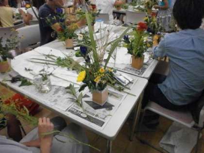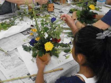 花器の制作から花を生けるところまで親子での体験を楽しみました。