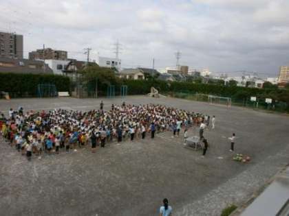 『今朝は、最初に野球チームの表彰をしました。みなさん、学校外でも様々な活躍をしているお友達がたくさんいると思います。これからも頑張って下さい。さて、先週の土曜日にうきたまつりがありました。最後に片付けの時間が設定されていました。その時、使った段ボールはゴミにしませんでした。どうしてですか。あっ聞こえて来ました。1.2年生が言ってくれたようにリサイクルするんですね。物を大切にする心もうきたまつりで学びます。