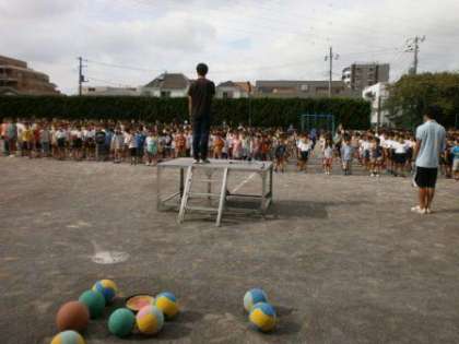 もし、ボールが当たってしまったり、遊んでいてぶつかってしまったときにどうすればいいのですか。そうです、ごめんなさいと謝る 心 が大切です。ルールを守って遊んでください。』