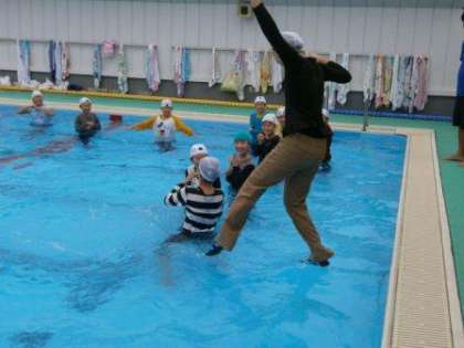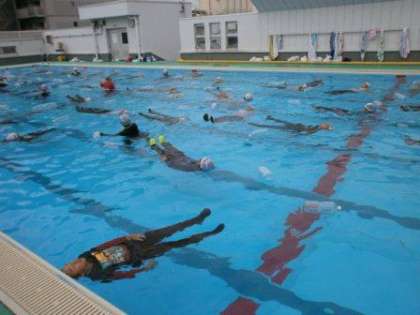 6年生が着衣泳を実施しました。昨年度天候に恵まれず今日の実施になりました。プールサイドでの態度は、見学者も含め普段の水泳の授業と変わりませんでした。担当教員から着衣泳のめあてについて話があり実習に入りました。