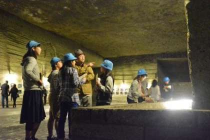 まず最初に大谷資料館に行きました。昔の大谷石の発掘所はひんやりしてい寒く、少し暗かったです。発掘に使った道具のようなものもありました。あと、所々に光のオブジェのような物もあり、とてもきれいでした。次に魚つかみ体験がありました。最初はすべって上手くつかめませんでしたが、やっているうちにコツがつかめ、三匹つかまえることができました。最後に食べた魚も美味しかったです。