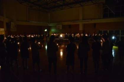 今日は、朝早くから時間を守って、最初は予定より少し遅れてしまいましたが、ハイキングで予定通りの時間になったのでとても良かったです。ハイキングでは、思ったより道がけわしかったり、遠く感じたりして大変でしたが、滝の快い音と美しい景色、気持の良い涼しい風を心で体で体験すると、大変さもすぐになくなるようでした。最後に食べたアイスが格別に美味しかったです。キャンドルファイアーでは、時間が少ない中、いろいろな遊びをして楽しむ事ができ、とてもいい1日になりました。