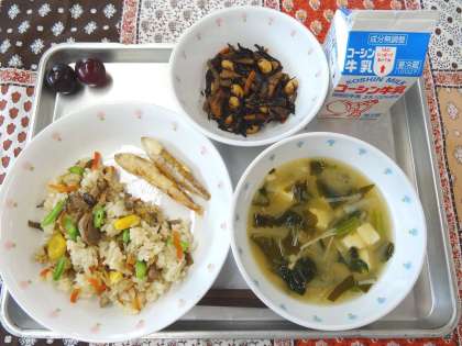 栗は五目ごはんに、豆(大豆)はひじきの煮物に使用し、特に煮物は「小学生でどこまで受け入れられるかしら…?!」と少し不安でしたが、予想に反して「ひじきの煮物好き!」という声もあり、どちらもとてもよく食べてくれていました。