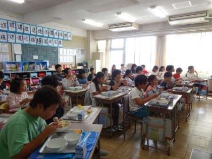 「うきうき給食」とは、そんな食物アレルギーを起こす原因になる食材を1つも使わないで、宇喜田小の子みんなが、安心しておいしく食べられる給食のことです。