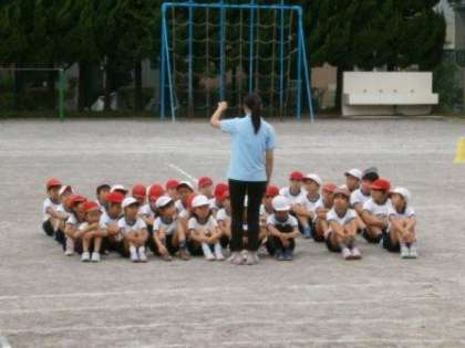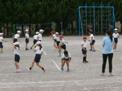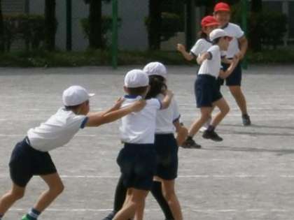 校庭で2年生が遊んでいます。でも、遊びとは違うようです。先生から色々と指示が出ます。どうやら、『ルール』を学ぶ体育の授業のようです。