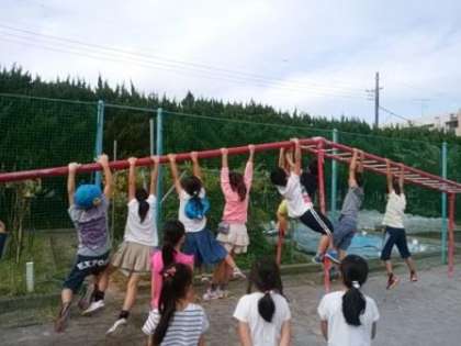 児童が集まってきました。うんていで遊びます。昔、遊んでいた『ドンキーコング』を思い出しました。うんていでの遊び方をいろいろと教えてくれました。ただ、ただ驚く事ばかりです。