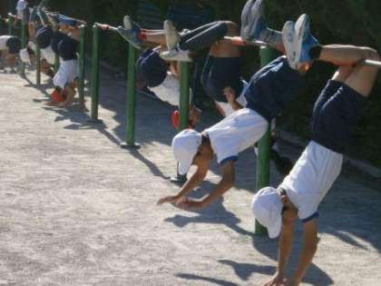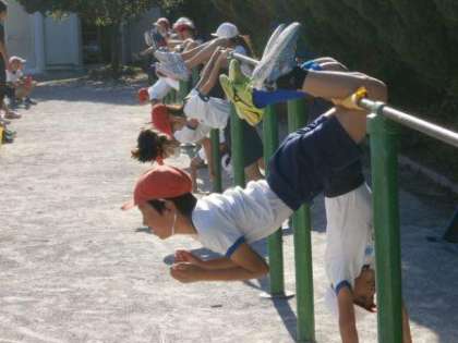 4年生の体育の授業を参観しました。音楽にあわせて、リズム鉄棒に挑戦です。『コウモリ』に挑戦できる児童が増えて来ました。