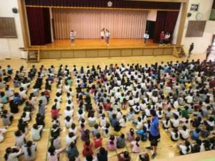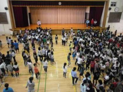 8時20分、体育館に全校児童が集まりました。集会委員会A班が主催する『○×クイズ集会』が始まります。全部で6問、楽しい時間を過ごすことが出来ました。