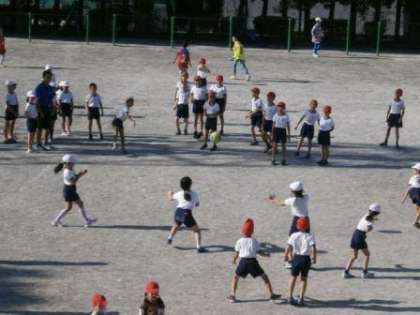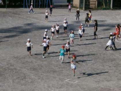今日は低学年の共遊びの日です。1年生から3年生までが先生がた、支援員の学生と共に校庭や森で遊びます。