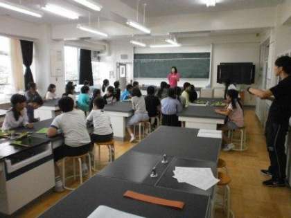 5年生の授業を参観しました。理科室で電磁石の授業です。自分で作った電磁石です。児童の真剣な態度に先生方が緊張します。