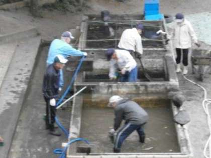 学校応援団『宇喜田第一住宅GO GOクラブ』の皆さんが菜園の手入れと池の清掃をしてくれました。