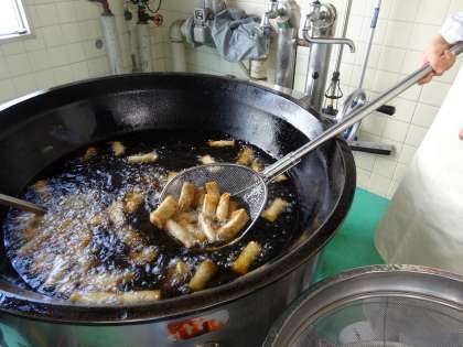 さて、今日の給食の「うのはなまき」、うのはなとはおからの別名で、ひき肉やにんじんなどの具とやさしい味に煮たものを、春巻きの皮に包んで揚げたおかずです。