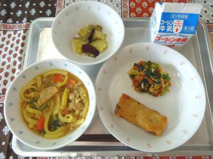 どのクラスも卯の花巻き、カレーうどん、もみじ和え、さつまいも…とどの料理も残菜がとても少なかったです。宇喜田小定番の味と、新しい味と、どちらもおいしく食べてもらえたようで、ほっとしました。